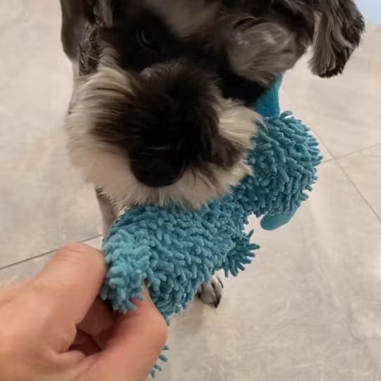 Squeaks, chews, and cleans